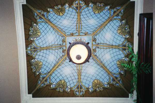 Painted Stain Glass Ceiling Murals using trompe l'oeil